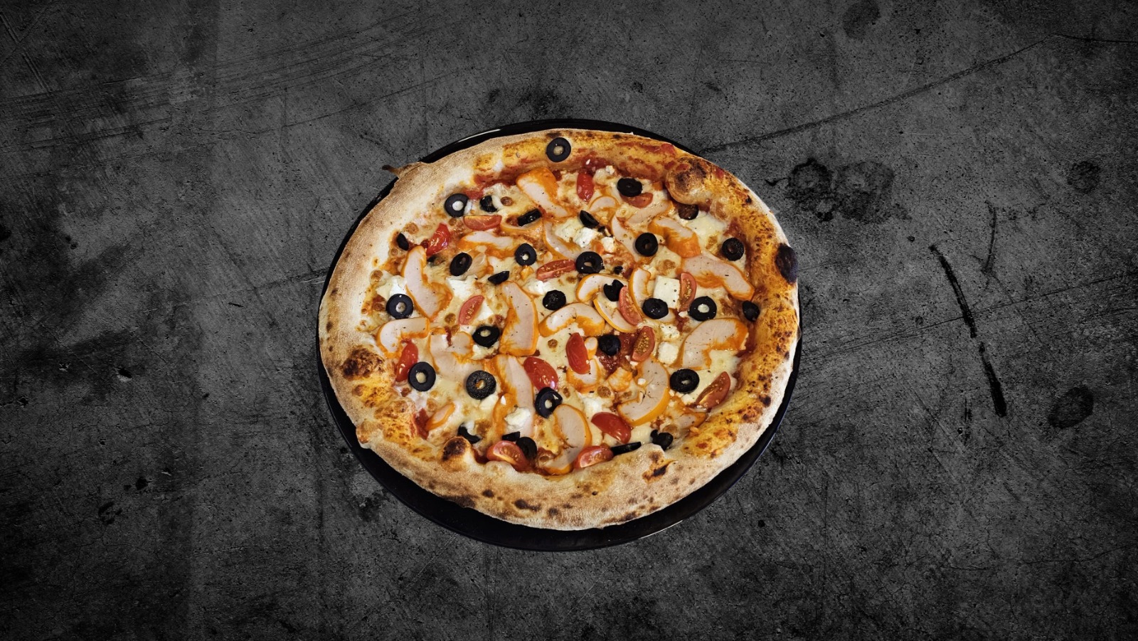 Sos de roșii, mozzarella, brânză feta, piept de pui, măsline, roșii cherry Mărime: Standard 500g – 36 Lei XXL 1200G – 72 Lei