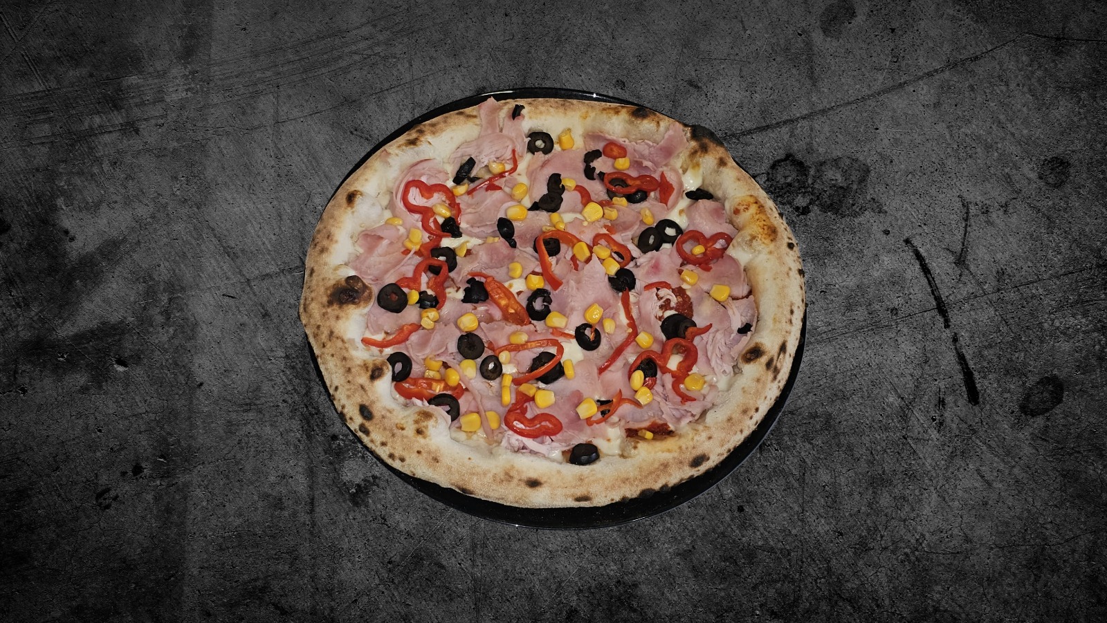 Sos de roșii, mozzarella, șuncă, plus două legume la alegere Mărime: Standard 500g – 34 Lei XXL 1200G – 68 Lei