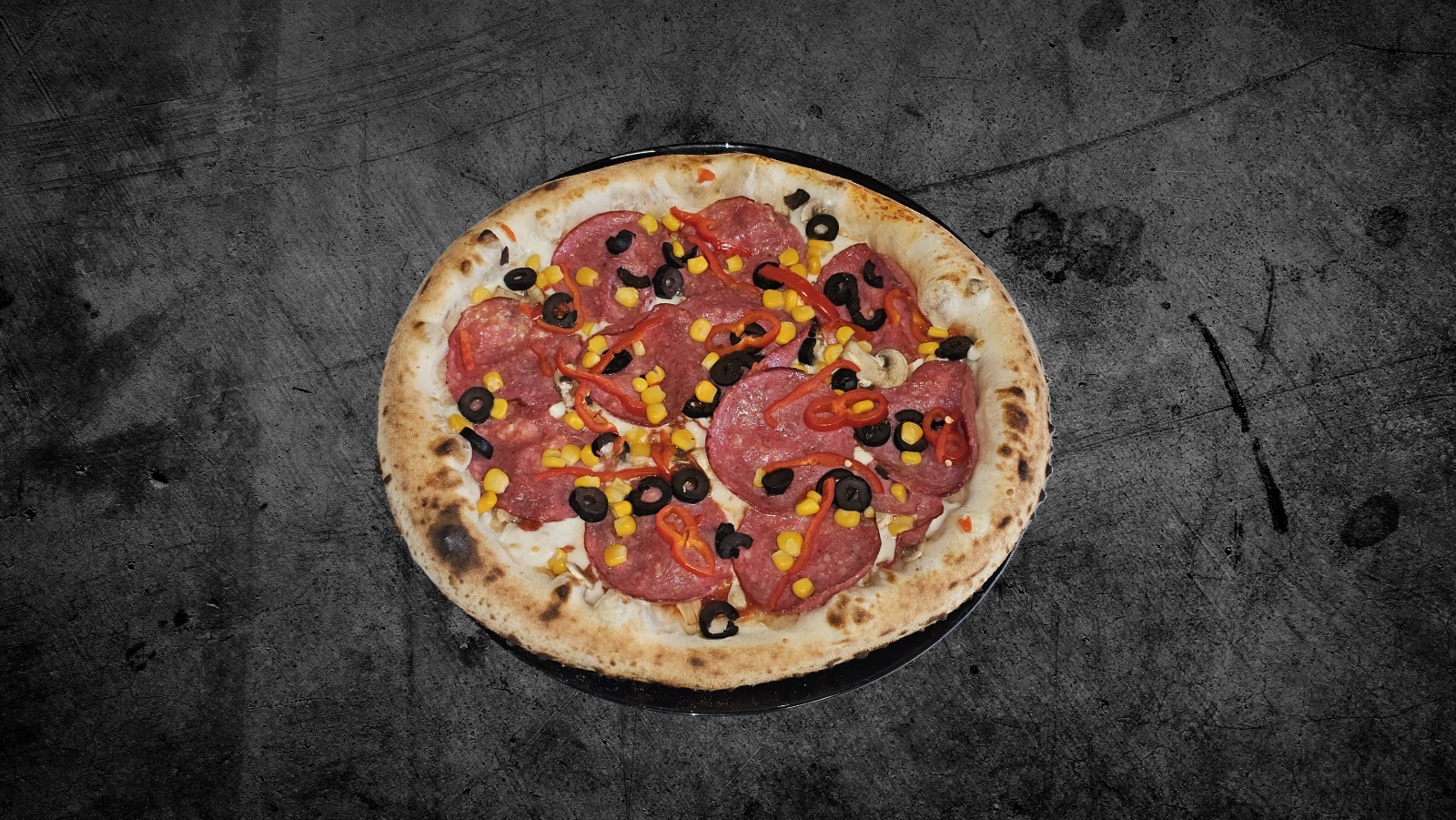 Sos de roșii, mozzarella, ciuperci, salam, porumb, ardei, măsline Mărime: Standard 500g – 35 Lei XXL 1200G – 70 Lei