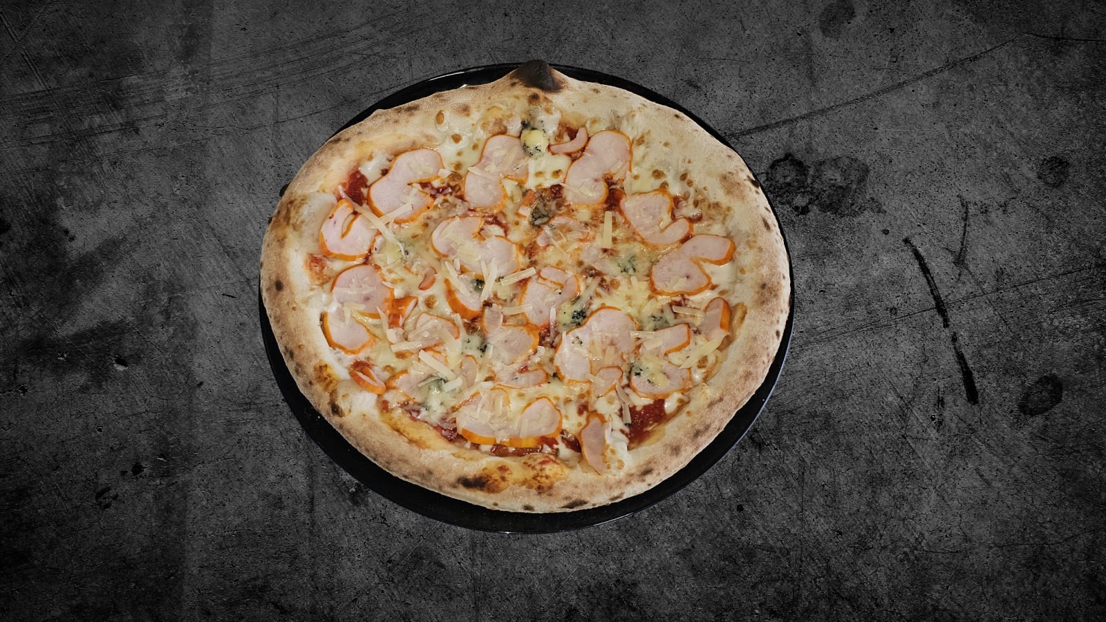 Sos de roșii, mozzarella, piept de pui, gorgonzola, parmezan Mărime: Standard 500g – 37 Lei XXL 1200G – 74 Lei